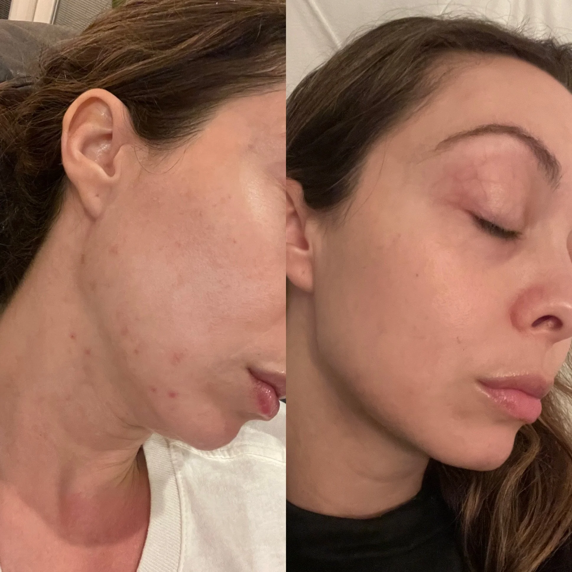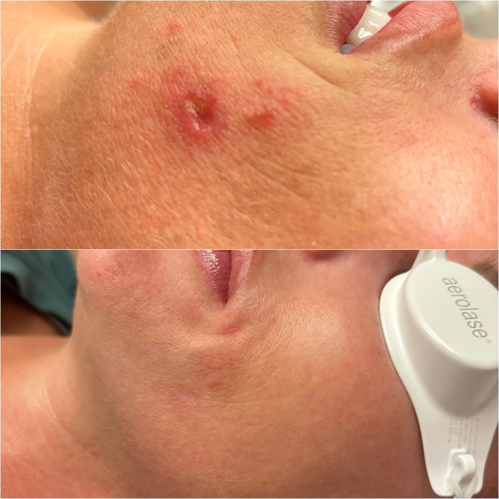 Unlike traditional therapies is no downtime meaning there is no irritation such as itchy, dry or sensitive skin following the treatment. You will notice an immediate decrease in redness and inflammation leaving the office and that will continue for 24-48 hours.
